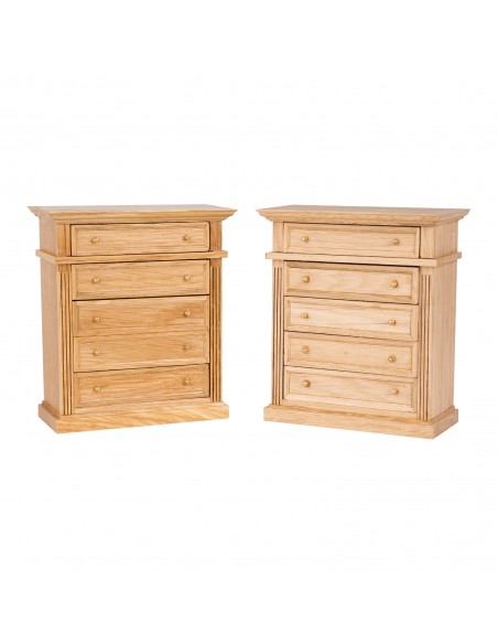 This is a beautiful modern white oak dresser. Just put whatever you want in it. Your dollhouse can be a beautiful and personalized creation. This miniature oak cabinet with drawers has a classic construction with a flat surface, an elevated backboard, and five sliding doors. Unfinished furniture pieces are ready to customize with paints, stains, and more!